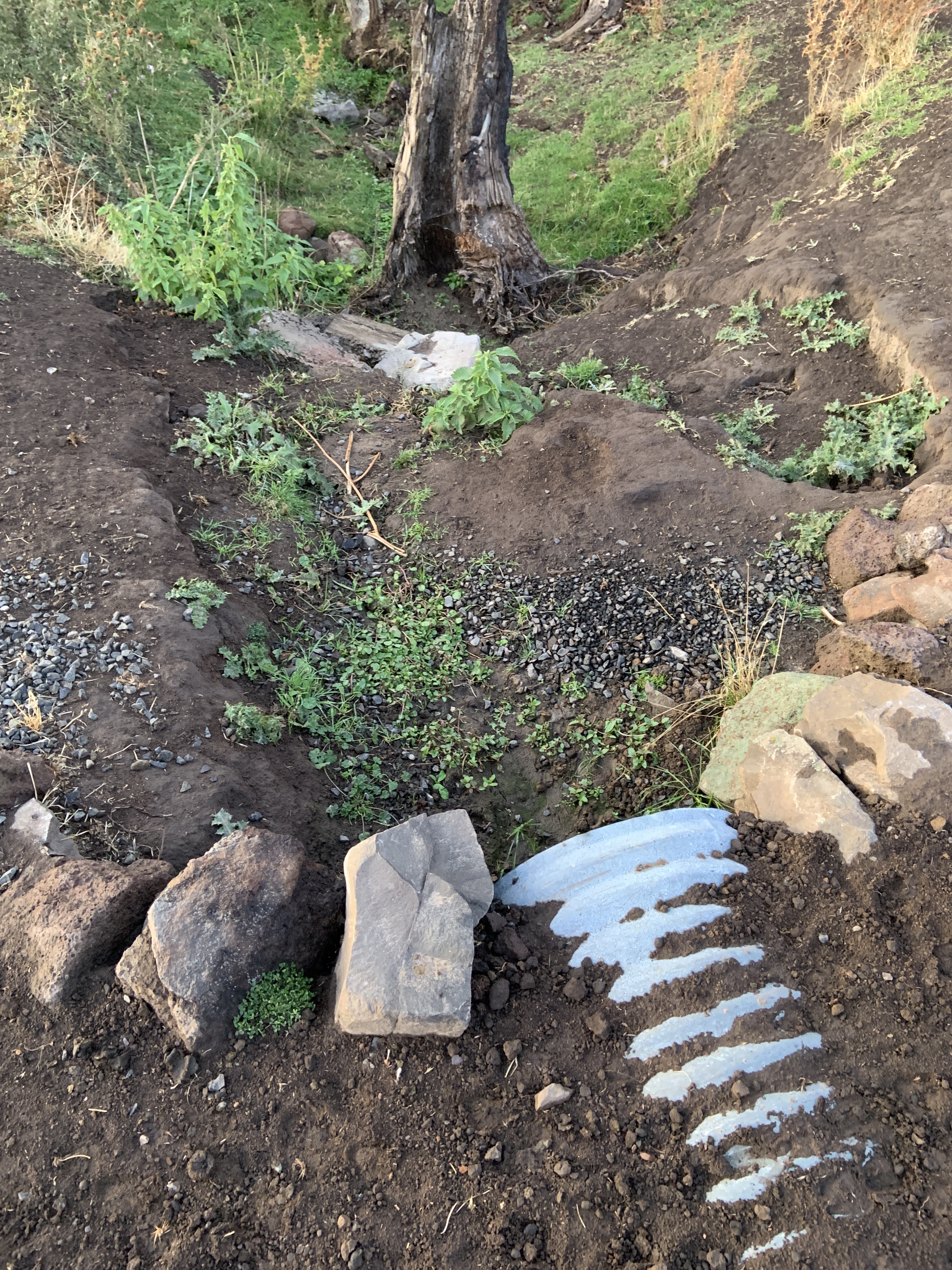 - Rock in gazebo downhill side with large rocks
