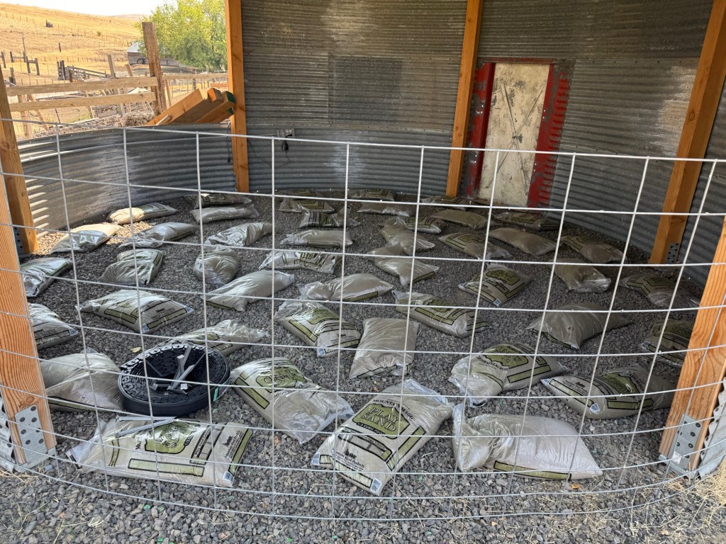 Labor Day weekend was spent getting ready for the next thing whatever it is. Annmarie wants me to get the Dodge pickup cleaned out and the Ford diesel up and going. I bought two new batteries for the Ford and the Gingerman got them in and the pickup started. He has spent a few days tinkering with it and it is running pretty smooth. It just needs a couple of quarts of power steering fluid. Plus, he found a brand new tire weight on the ground so it will need to go back in and have the tires rebalanced. I was able to unload the sand out of the Dodge. I needed space to fit a piece of plywood and there wasn’t any with the sand still riding around in the truck bed. I needed to get the replacement throttle cable ordered for the compactor so that we can spread the sand out and pound it in place. I left the sand in the bags so that the cats would not use the gazebo as a personal toilet.