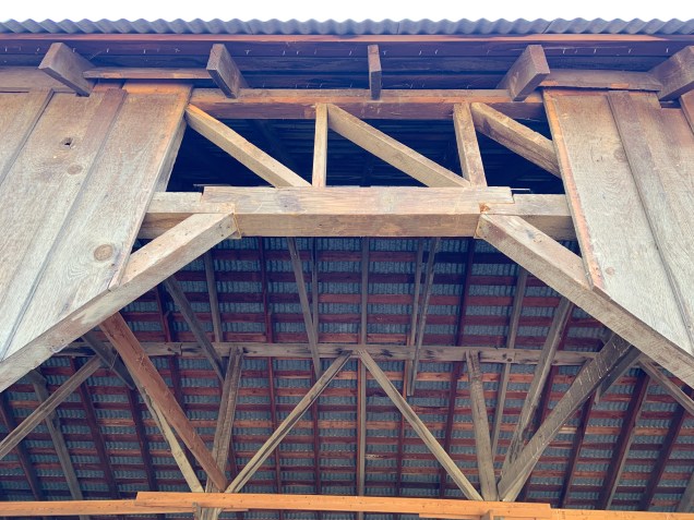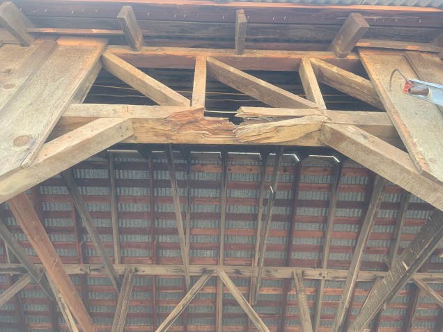 The new beam was a little thicker than the old. We did a basic overlap joint then recut the old truss members. It was nice to reuse all old wood.
