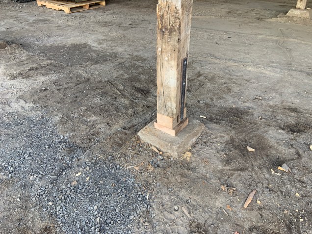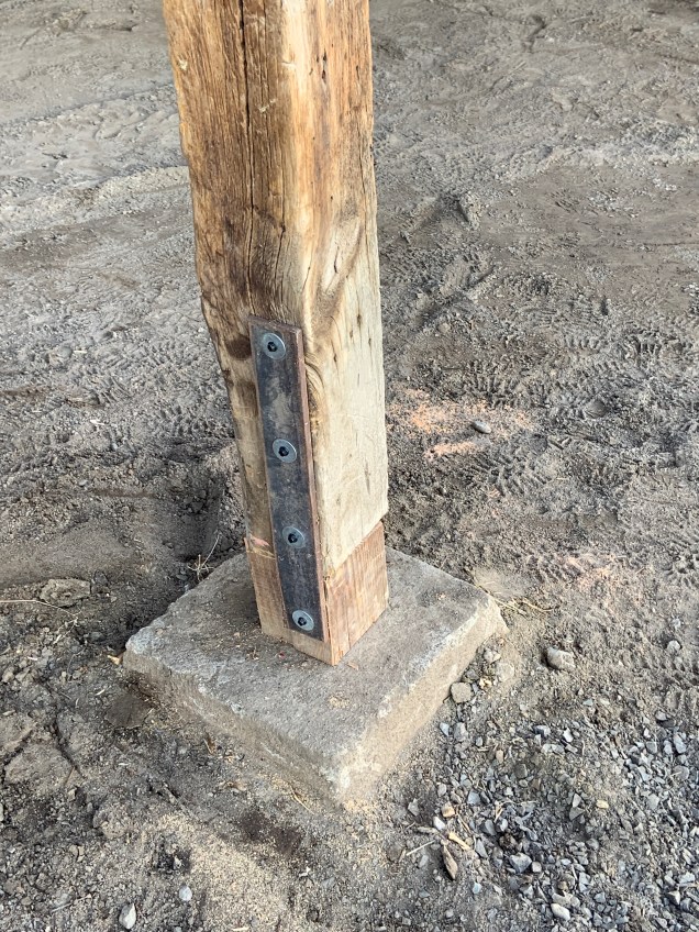 Tex did the cosmetic repair to the outside while I started in on the upright beam repairs. I had him go get a weather 1×12 from the pile that has been out in the sun for a year. It blended quite nicely. It should not take it long to blend in.