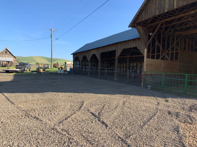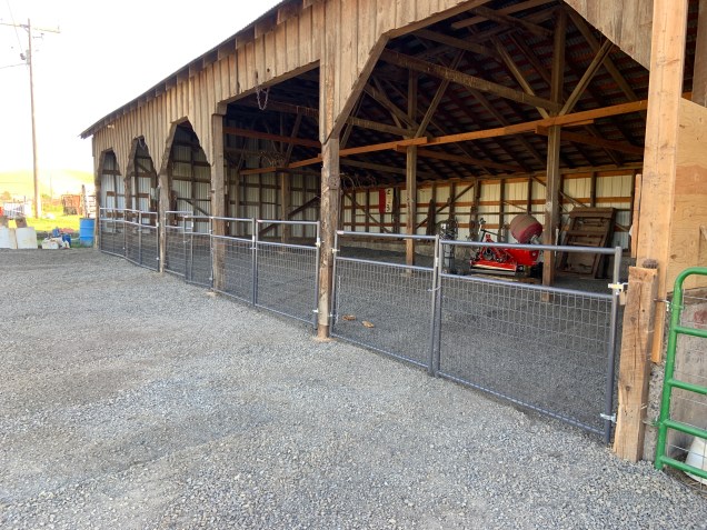 I spent some time and spread out the rest of the gravel. While I did that Tex mounted 6 sheets of plywood into the hay area. We don’t want the hay scraps to fall back into the cleaned out area. He go six sheets up and I need to go buy six more to finish the wall separating the hay area and the rest of the shop.