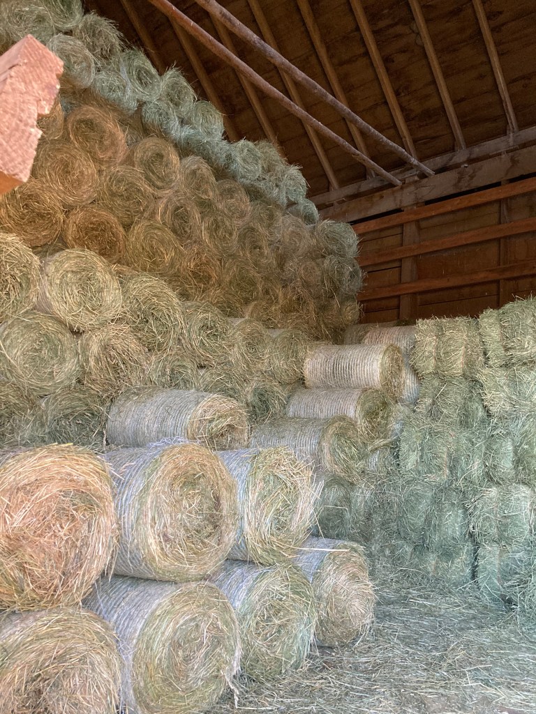 I managed to get another 100 bales completed and now field #2&3 are all done. #2 still has some unbaled hay along the creek side but again, after jamming the baler another six times I was done! Turning it did help but some is just still in the tall grass and I cannot get it baled without jamming. I did the sheep trick again and drove it down to the orchard for a sheep clean out. I was going to help with the hay removal process so the sheep can do their part. I also sheared a shear bolt for the second time and just did not want to mess with it any more for the day. I went and got more diesel for the tractor and filled up the pickup, I managed to get 25 gallons into the pickup, it was getting close to fumes and the gas gauge is not very accurate on the low side. Older vehicles and equipment need a user manual, for sure, just to understand all the quirks. We hit it hard and managed to fill up the entire first hay room. It is stacked all the way to the door, and the second room has started getting round bales. We have managed to put away 17 ton of hay in the last two days. I am keeping track of which fields and how much is coming out of each field so we can start to do some projections for how much hay we will be getting next year.