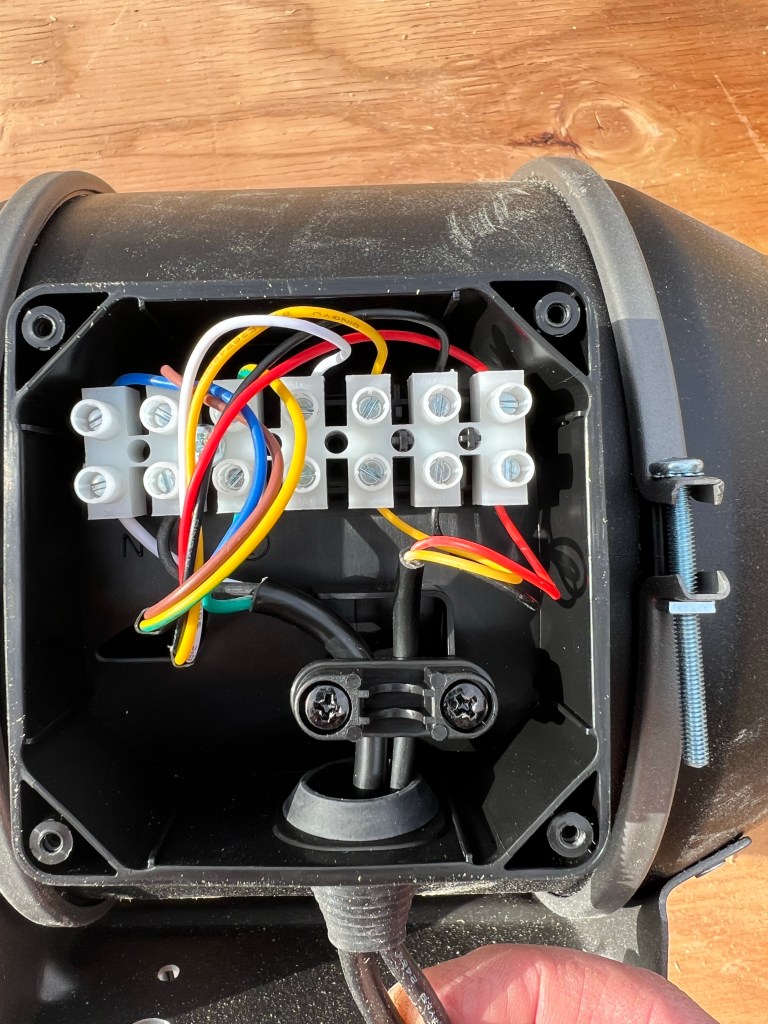 Friday morning when Mr Rainman and I went out to fix the gate into the tree orchard area, he hit it with the tractor earlier in the summer. We noticed that the carcass only had the head intact and three legs. One leg was missing and one was off in the pasture about 40 feet from the carcass. It had been stripped down. We found a dig out spot under the fence. This is where the predators have been crawling under the fence to get to the sheep. It was a fresh crawl spot and the dirt was still moist. We ended up planting a wooden post in the field and mounting the electronic eyes on all four sides of the post. They are solar powered with a battery that lasts all night. So they charge all day and then light up and flash at night. It is supposed to look like light reflecting off of eyes. This is supposed to scare the predators off. We got everything mounted but did not turn them on. I went back up to the machine shed and created a snare to place over the hole. We are going to leave the carcass in the orchard for one more night to see if something returns tonight. This meant that the four vultures that showed up today got to fill their bellies all day long. They were pretty satiated. I will move the carcass tomorrow if we don’t catch anything. If we do I will try the snare a second night. Who knows what will happen.