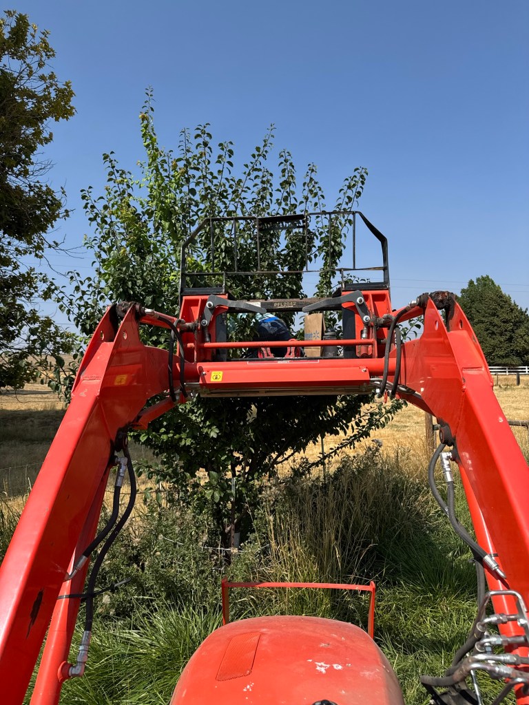 I did find out that the dead raccoon was on the fence and had not been moved out to the bone pile. So I had to use a shovel to scoop it up and toss it in the tractor bucket for its eternal resting trip.