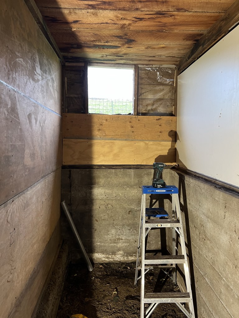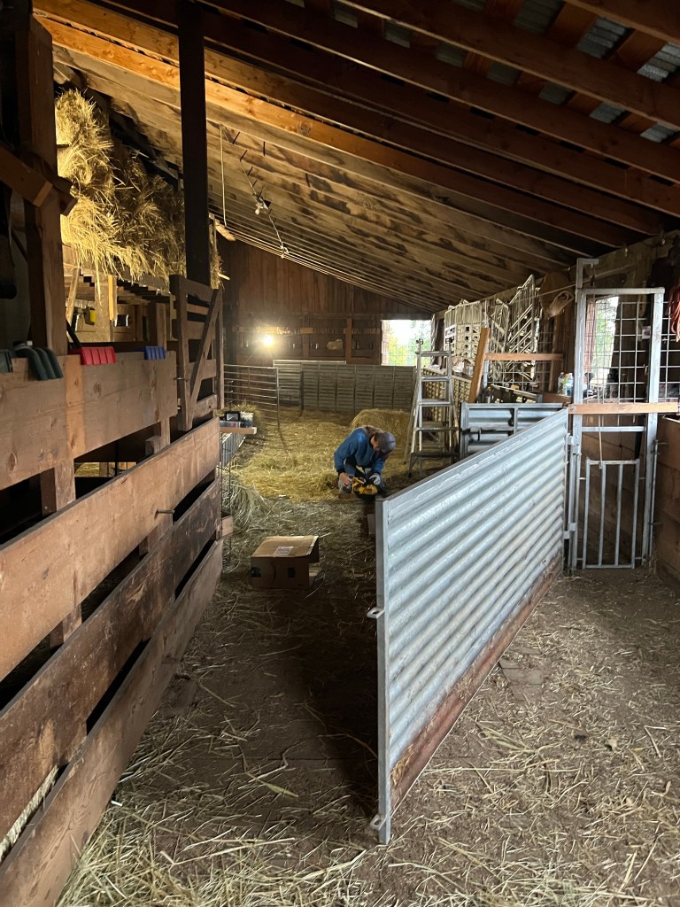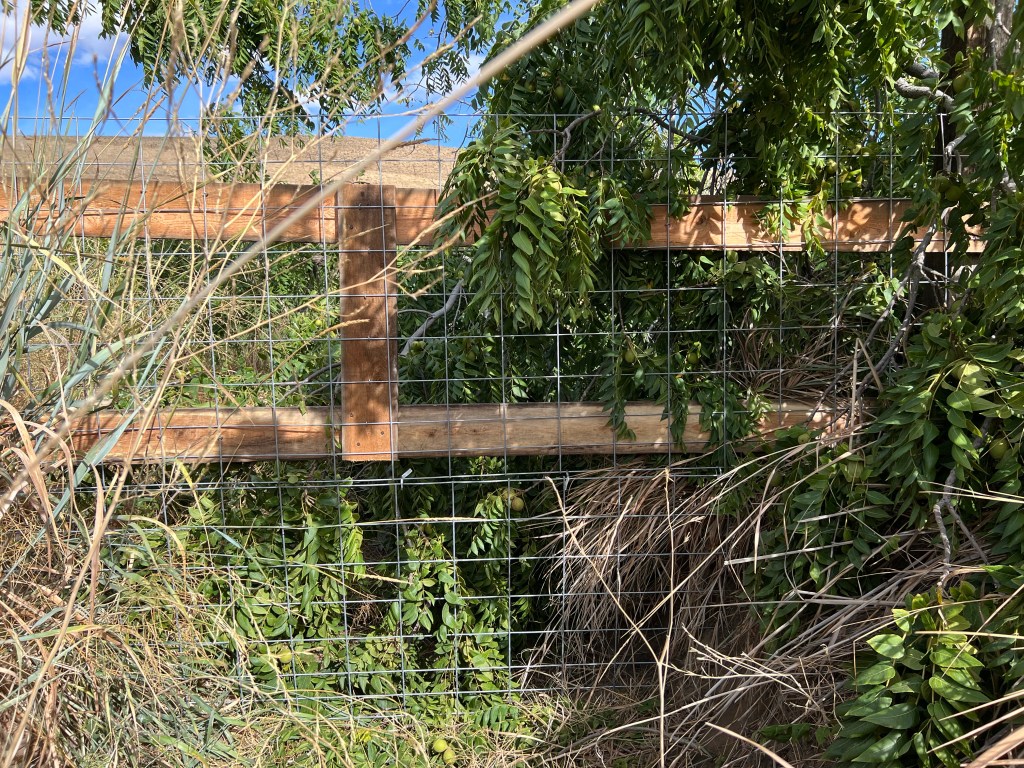 So we went to the far end and worked on the ditch crossing and did battle with the downed black walnut tree. It landed right where we needed to install a railroad tie and put the ditch crossing in place. We managed to get it installed and the paneling cut and in place. The last thing was to install the gate and we had it done enough. Which was a good thing as both of us needed a day off and no fencing. The Apprentice has collected an astounding amount of bruises and scratches in the last two weeks.