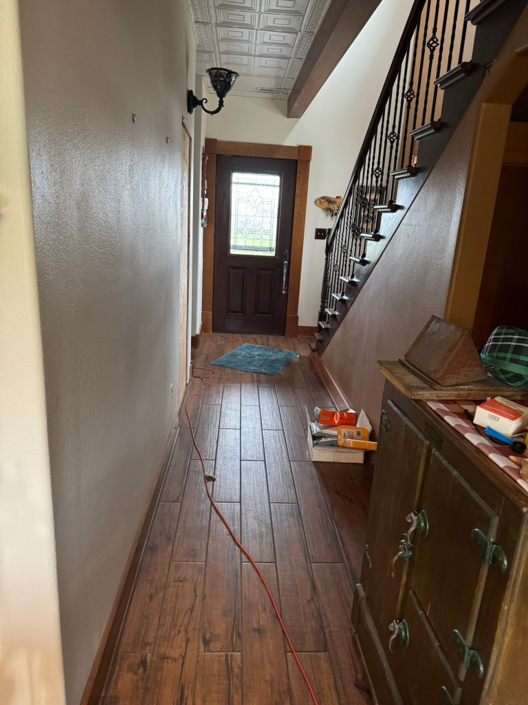 On Sunday, we cleaned out the bathroom and took all of the tools out to the old house. We also cleaned up the hallway! You can actually walk down the hallway and not get attacked by the construction mess.