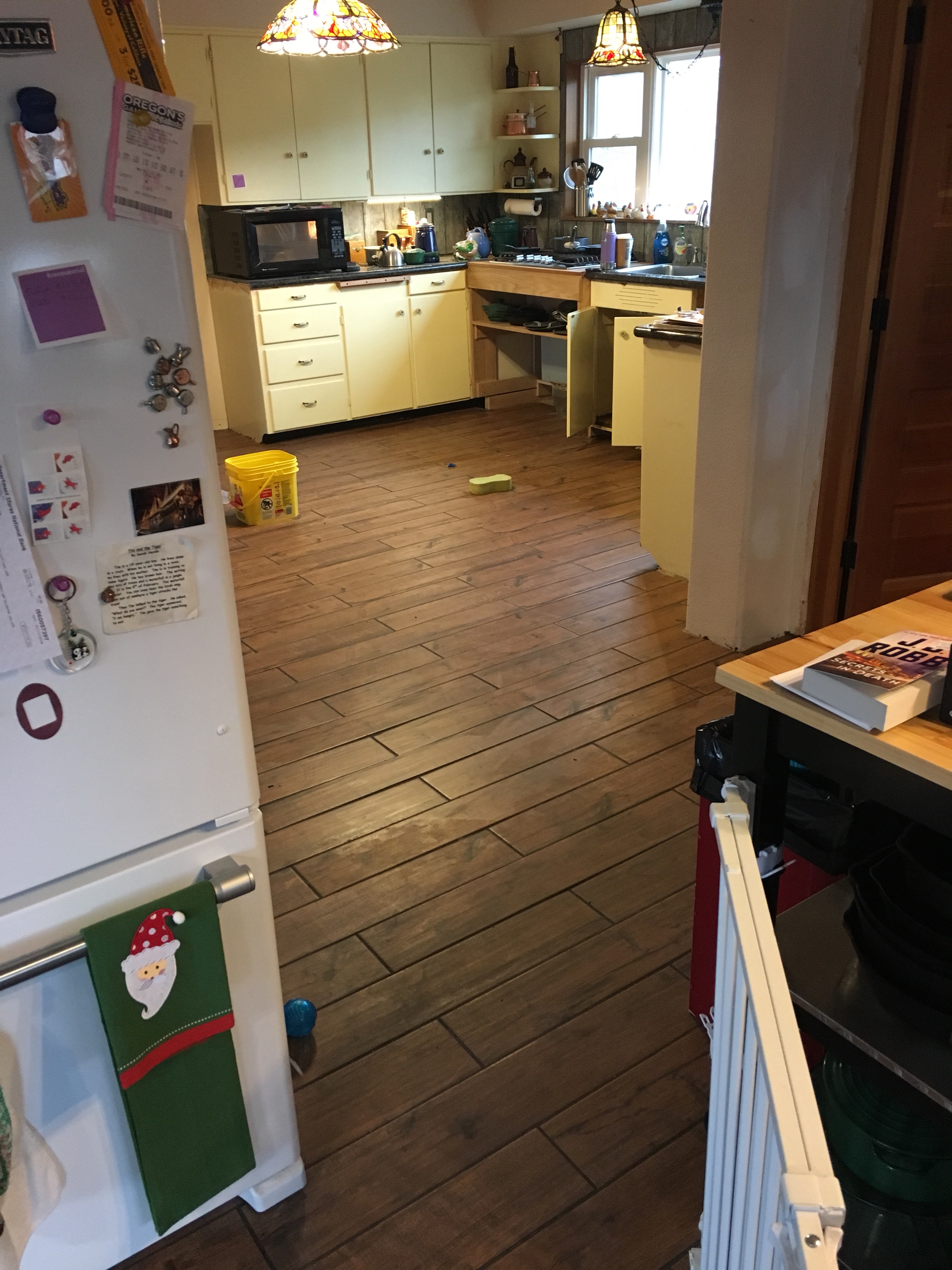 Our hallway has been clogged up with various items during this entire construction. Now that not as many tools are needed I am pre staging the tile. It all needs to be up to room temperature before it can be installed.