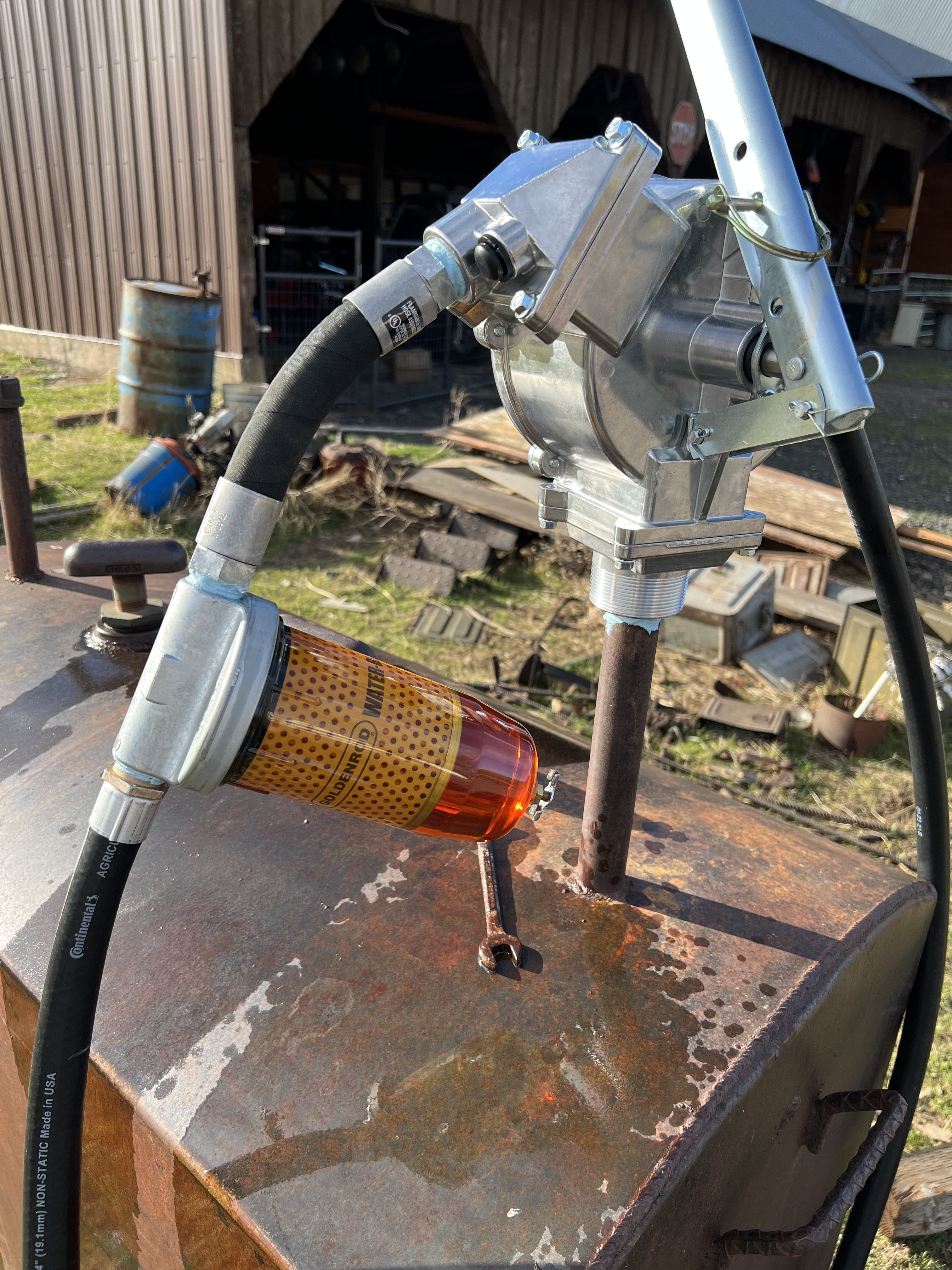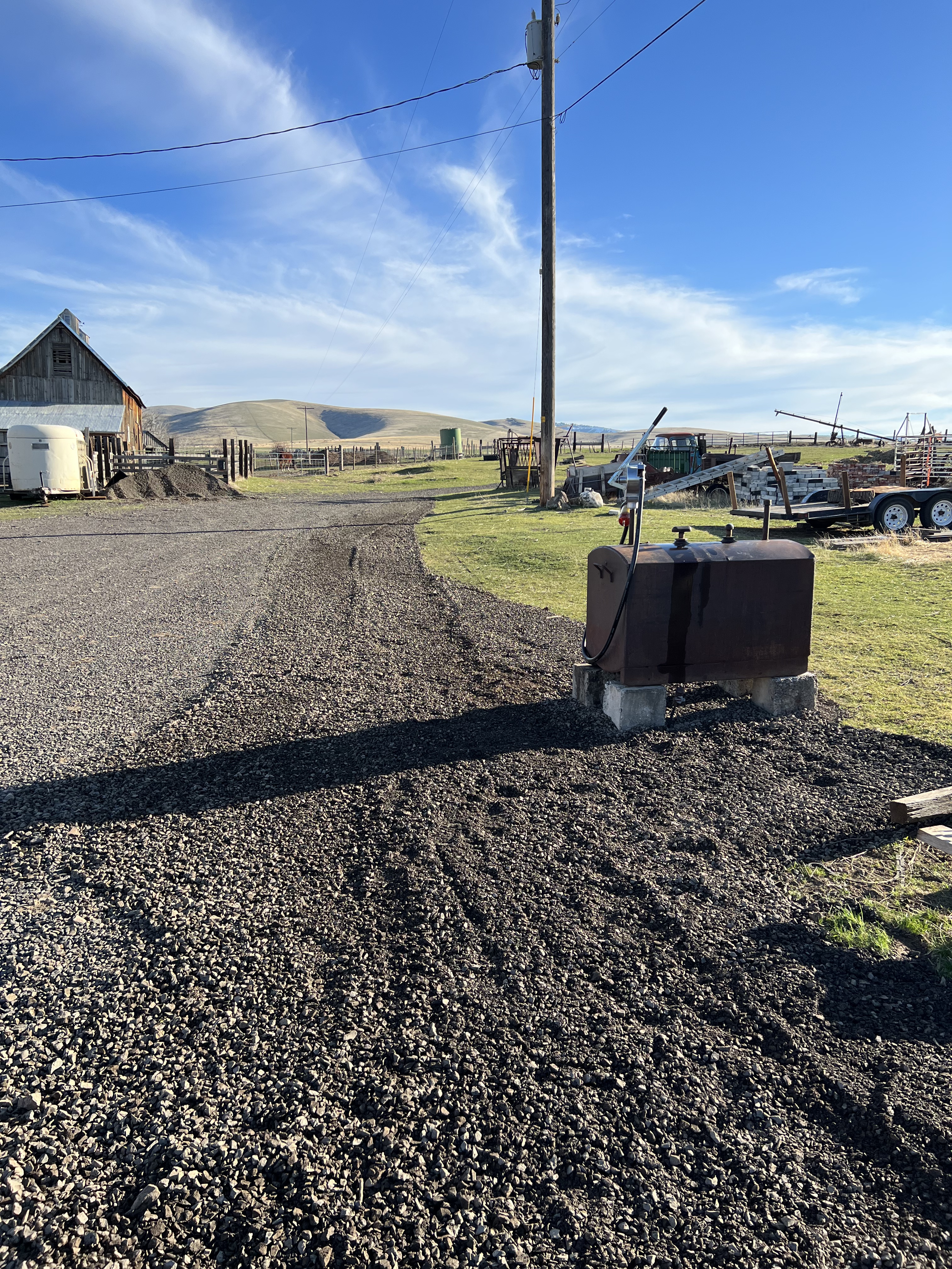 There is supposed to be another winter storm coming in the next 24-36 hours. The temperature is supposed to drop to 10F and we are supposed to get 8-18” of snow in the mountains which will again cut off all traffic through the area. So I spent the last two days doing projects as the weather is going to limit my choices again. I got the fuel pump all assembled and working! I just need to pump out the five gallons of diesel and treatment I dumped into each side of the tank then I can get signed up for diesel fuel to be delivered on a quarterly basis. It will be nice to not have to go and fill up five gallon cans every week during the summer. I used some more gravel to widen the driveway. I want to eventually use up all of the gravel so I can move the entire pile to behind the grain bins. Yes, I did go with a hand fuel pump, we don’t use so much that hand pumping 5-8 gallons really is not onerous.