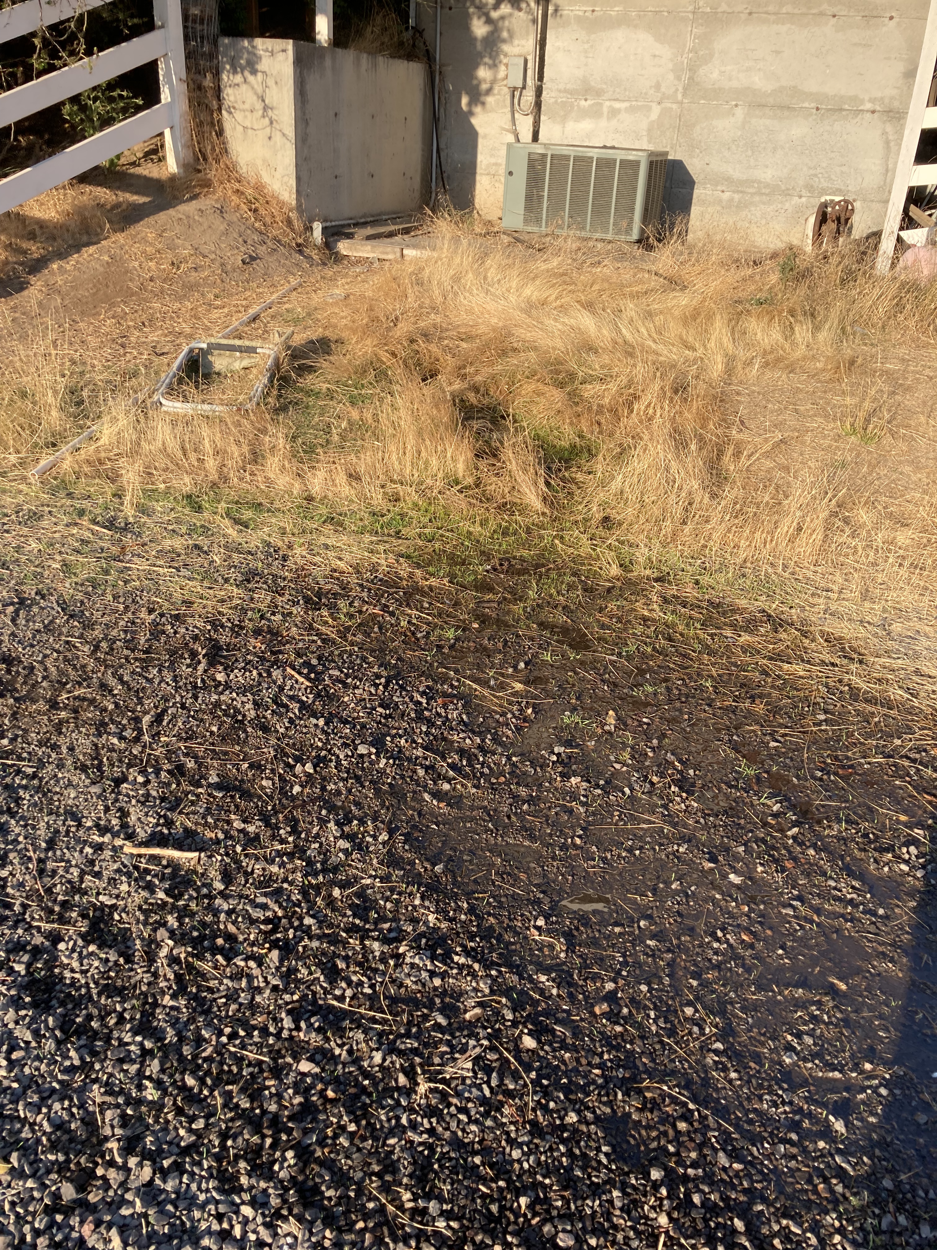 Saturday I went down to repair the pipe and turn the pump back on. The real problem is the old 1.25” line is in the middle of a piece of 2” line. If the break is up in the 2” line I have no idea how we are going to repair it. There is a heat pump on an old concrete slab that is broken in several places, a new concrete room addition onto that end of the house and all of it is over the buried pipe. This being a holiday weekend a plumber would only be about three times as expensive as normal. We figured we could just get the water up and going again even if it did leak and get it fixed professionally on Tuesday. Yeah, the leak is up inside the 2” pipe! I went home and did the dishes and filled up more containers with water just in case. This will let us use water all weekend. I dug a little trench from the hole to let the water run out in one spot. Monday night I will turn off the pump, break the line apart and bale out all of the water. The water is not getting absorbed into the ground as that is clay and rock hardpan that the pipe is sitting on.