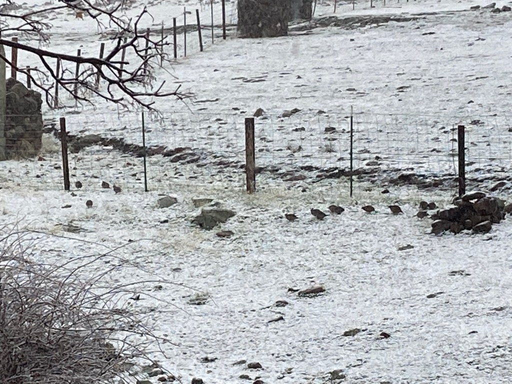 I am hopeful we can get the ceiling repaired in the next couple of weeks. Meanwhile we have been feeding the quail. We really want the population to boom this next spring so we are trying to keep their numbers up this winter. The rock pile in the top right hand corner of the picture hides a 25# quail food block that they graze on when they make their daily rounds. The rocks keep the block from the view of our chickens, therefore the chickens don’t know there is an abundance of food within walking distance! The quail came by last night and I was able to count 94 quail in one covey. We are pretty sure there is a second large covey on the upper end of the property. They don’t get fed but we figure if we go into spring with 100 we should come out this next fall with a few hundred.