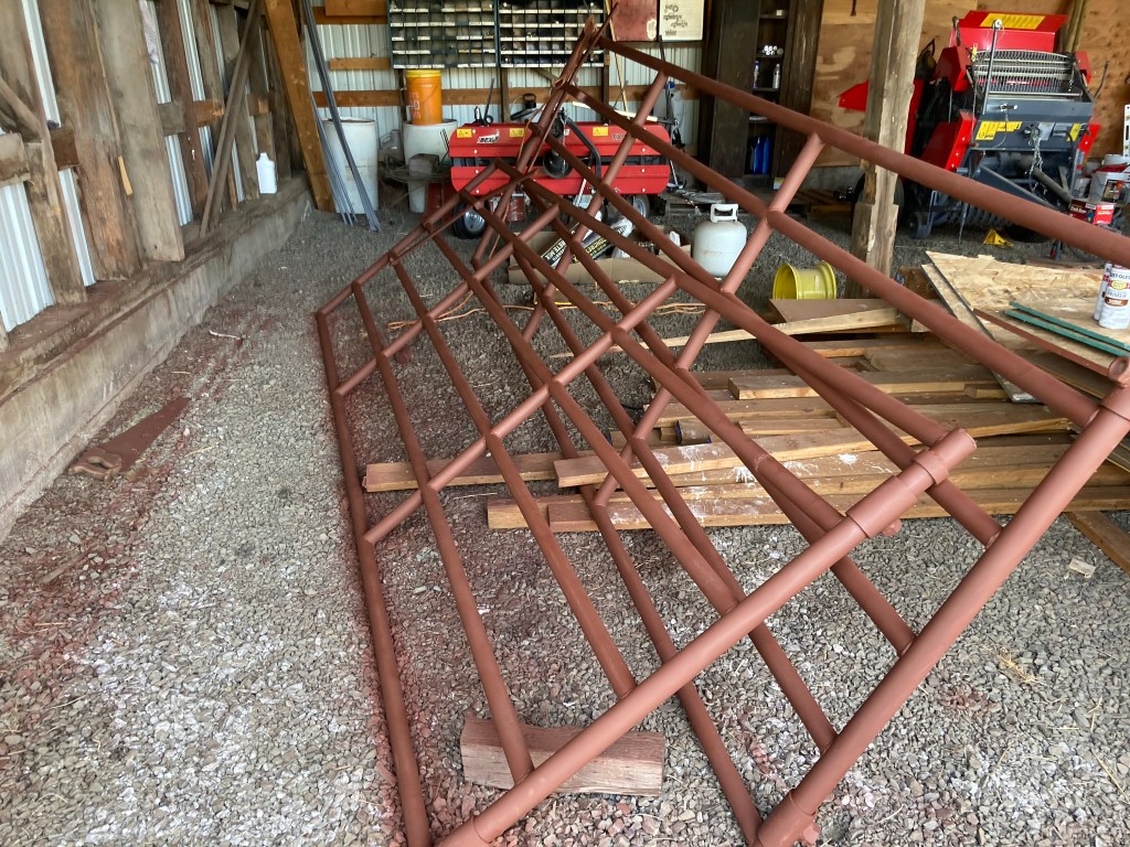 Saturday was spent cleaning up around the farm. The footings for the bridge were started. They have to be dug out first then I can build the concrete wooden footings and put some metal in the hole then it can be filled with concrete. We are going to use my small electric concrete mixer when we do it. It will only mix about 200# of sackrete at a time. It’s going to take a while to get the footings poured.